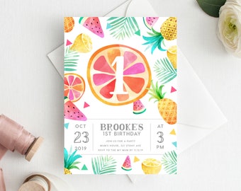 Tropical 1st Birthday Invitation Pineapple First Birthday Etsy